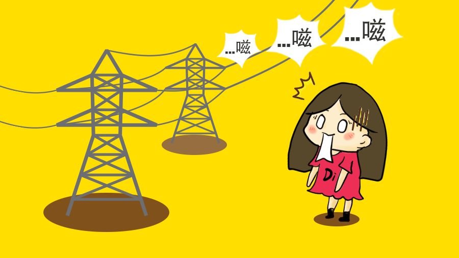 平常的時候,高壓線上的交變電流會產(chǎn)生交變磁場,在磁場作用下,電線會振動發(fā)聲。聲音頻率與交流電的頻率息息相關(guān)。在晴好的天氣時,聲音會小一些,也容易被周圍環(huán)境的背景噪聲遮蓋。下雨的時候,隨著空氣濕度的增加,空氣電阻降低,電暈放電增強(qiáng),會導(dǎo)致放電聲音增大。